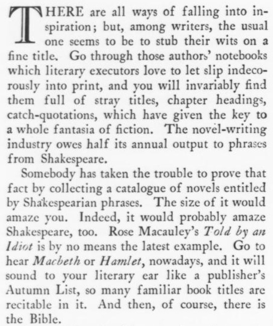 *** the inflated humility of the name, Une Vie [whereby Gilbert Gabriel, as with his discussion of titles borrowed from Shakespeare lines, is touching on a pet peeve of mine]