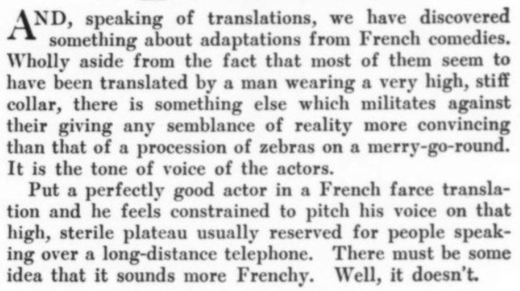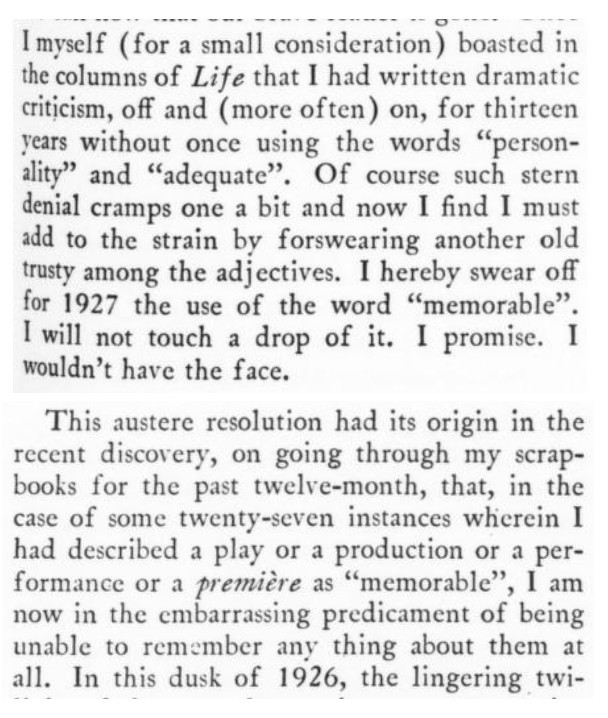 Bonuses: Woollcott refers to "negative authorship," i.e., pride in the trite phrases one hasn't ever written. Fictitious travel guides: France at a Glance; Spain without Pain
