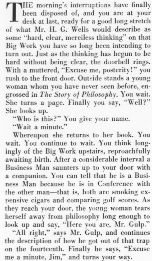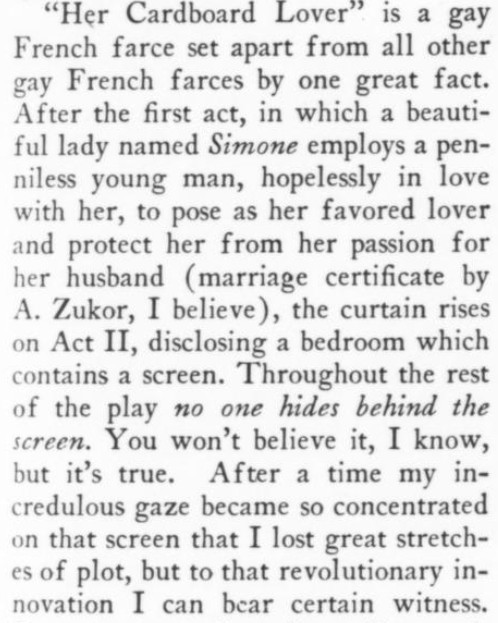 Notes on a couple of the attachments: 1. They completely missed out on using a "baby grands" gag in the piano cartoon! (Do I Have to Do Everything Myself? dept.) The term goes back to the 19th c., so no excuse on that account. 2. LOL/ouch to that Benchley quip about Baker's Plays (publishers of The Can of Yams). (:v>
