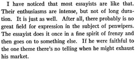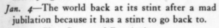 ***They carry away with them their impressions of America, and when they reach England they sell them. This export of impressions has now been going on so long that the balance of trade in impressions is all disturbed. There is no doubt that the Americans and Canadians have been too generous in this matter of giving away impressions. We emit them with the careless ease of a glow worm, and like the glow-worm ask for nothing in return.***Or here, again, is a form of "impression" that recurs again and again-"At Cleveland I felt a distinct note of optimism in the air."This same note of optimism is found also at Toledo, at Toronto—in short, I believe it indicates nothing more than that some one gave the visitor a cigar.***This particular part of London is connected with the existence of that strange and mysterious thing called "the City." I am still unable to decide whether the city is a person, or a place, or a thing. But as a form of being I give it credit for being the most emotional, the most volatile, the most peculiar creature in the world. You read in the morning paper that the City is "deeply depressed." At noon it is reported that the City is "buoyant" and by four o'clock that the City is "wildly excited."***The Abbey, I admit, is indeed majestic. I did not intend to miss going into it. But I felt, as so many tourists have, that I wanted to enter it in the proper frame of mind. I never got into the frame of mind; at least not when near the Abbey itself. I have been in exactly that frame of mind when on State Street, Chicago, or on King Street, Toronto, or anywhere three thousand miles away from the Abbey. But by bad luck I never struck both the frame of mind and the Abbey at the same time.***It was understood that the main object of my trip to England was to find out whether the British people have any sense of humour. No doubt the Geographical Society had this investigation in mind in not paying my expenses.***Please note that roar at the end of the English personal anecdote. It is the sign that indicates that the story is over. When you are assured by the narrators that all the persons present "roared" or "simply roared," then you can be quite sure that the humorous incident is closed and that laughter is in place.***
