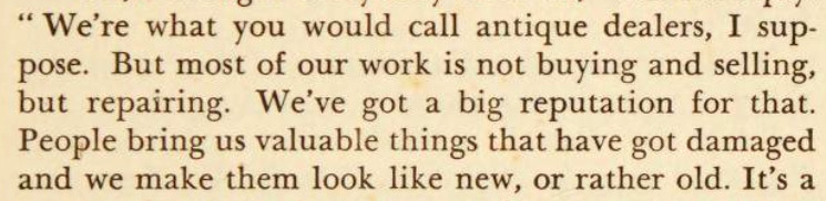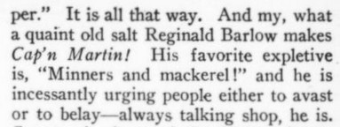 ***I'd say S. S. Dine [who made rules about mystery writing] would be rolling in his grave, but that would break one of the general rules about the supernatural. So he'd be lying very still but disappointed all the same.***Tickets didn't just run into the thousands of dollars, they sprinted.***They all had their links, their grievances and their arguments, which, adding ego and cooking under the desert sun, baked into nothing less than a resentful quiche.***"Pissssss off," he said, spending S's like he'd robbed a bank of them.***Royce scowled back at the door like it had insulted him.***"He shouldn't be so... so... caviar... with my friendship."***"Why do you get to interview me, and I don't get to interview you?""Because I'm the narrator!"***"I know how a denouement works," I said, sulking."De-noo-moh," Wolfgang said from behind me, ladling the French over my mispronunciation like syrup.***If the Ghan were a steam train, Royce's ears could have powered it.***Bonus: The Four Cousins of Barbara Who-Gives-a-Toss (a nonexistent book given, by the narrator, as one of several hypothetical examples of a trend toward best sellers that include the protagonist's name in the title)