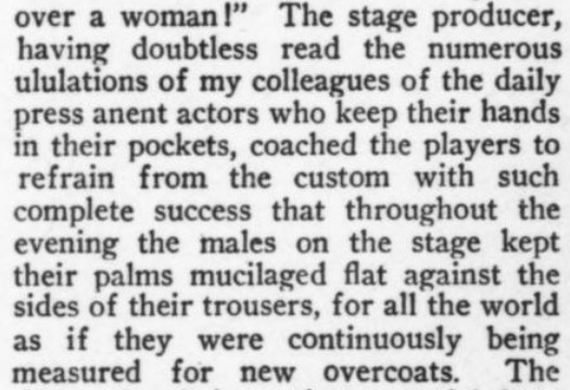 ***The afternoon edition of the Metropolitan Planet was going to press. Five thousand copies a minute were reeling off its giant cylinders. A square acre of paper was passing through its presses every hour. In the huge Planet building, which dominated Broadway, employés, compositors, reporters, advertisers, surged to and fro. Placed in a single line (only, of course, they wouldn't be likely to consent to it) they would have reached across Manhattan Island. Placed in two lines, they would probably have reached twice as far.***In the whole vast building all was uproar. Telephones, megaphones and gramophones were ringing throughout the building. Elevators flew up and down, stopping nowhere.***There was something in his massive frame which suggested massiveness***"Inspector," he said, "I must have some more clues. Take me again to the Kelly residence. I must re-analyse my first diæresis."***