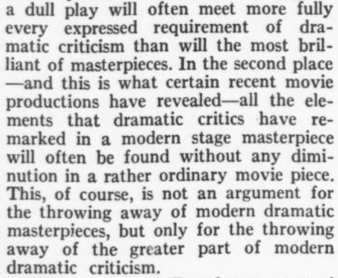 *** Every one of its characters has been long since so standardized that no matter where on the road the play may be it can always pick up a spare part at the nearest stock-company theatre that will fit exactly. [ditto]