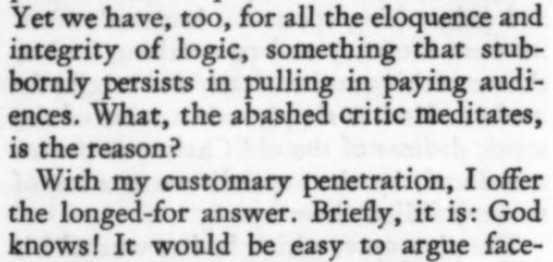 Notes on some of the attachments: 1. I included the "pastimes" item for the moostache-shaped lampshade and the shmoolike ornament who seems to be "playing along." 2. I looked into this business of ping-pong at the Little Carnegie theater. I get the impression it was in a separate room, but I like the suggestion here that it was directly competing with the movie being shown. 3. Shaw and Lee can be found online; but, unlike Fuzzy Knight, they did not (imho) live up to the promise. Best moment I found was when, in a routine where they trade off delivering oneliners, they both start delivering the same joke at once, in unison (then look at each other in surprise, and simultaneously stop talking). 4. The "West" items are Rebecca West (aka Lynx) being filtered through an Alexander Woollcott piece that quotes her extensively--hence the peculiar framing. 5. You'll see that I pasted in E. B. White's remark about his funny illustration hopefully being on "this" page--because, technically, it wasn't (only because the end of the article, where the remark occurred, ran over onto the next page).