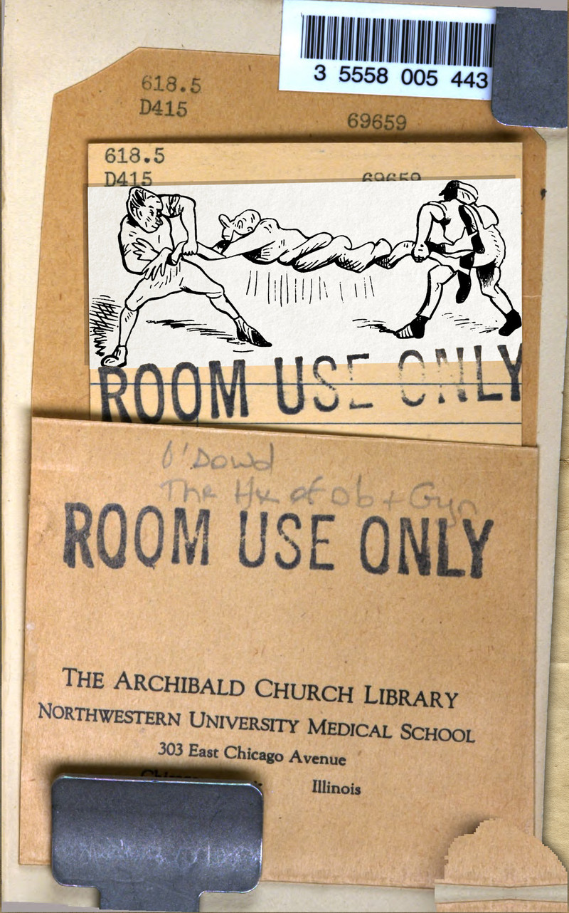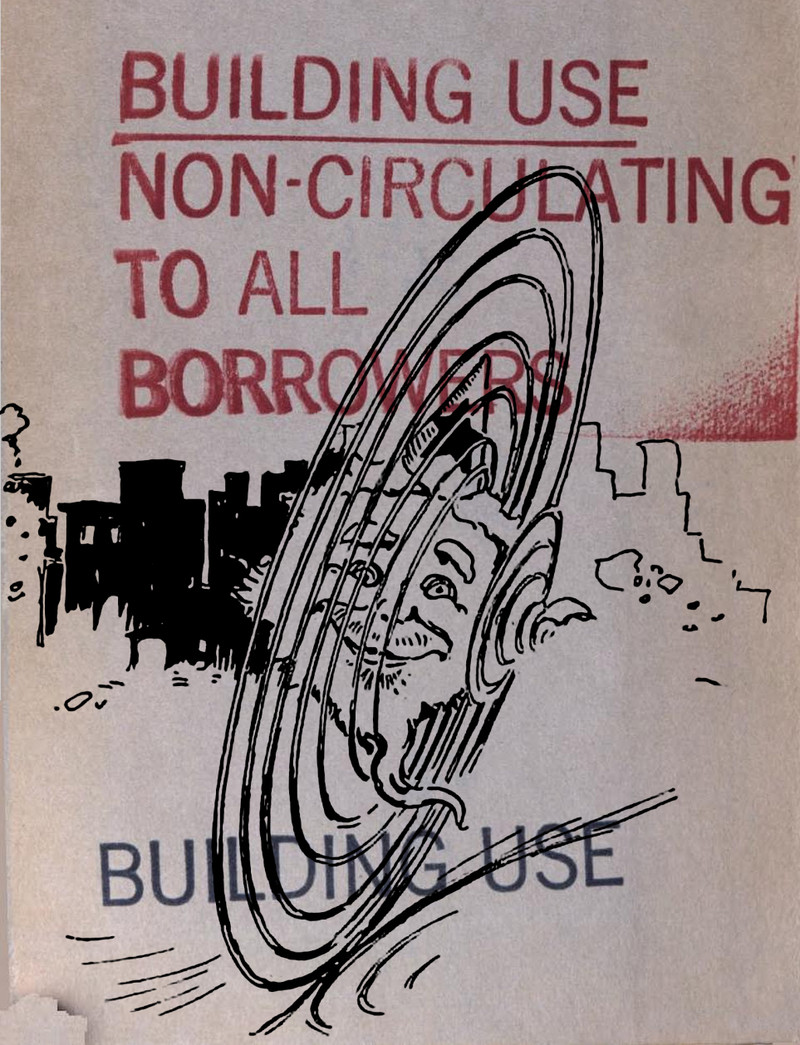 Some library books, for a variety of reasons, become "non-circulating." They no longer move in a circular path (according to the Latin root of circulate). And they are stamped to this effect, with words like "room use only," "may not be checked out," and "under no circumstances to be taken from the building." It's a precious status, indicative of value, rarity, and refererence-worthiness. Yet there's a tinge of sadness, too — a hint of decrepitude and dormancy. We asked a book-whisperer and learned that books do wish to circulate, to be worldly, to mingle, to be at large. And so, as our eccentric research takes us through the digital collections of libraries around the world, we keep a special eye out for non-circulating books. We check their endpapers for the scarlet lettering of "library use only." Then, through a painstaking process involving collaged elements from non-circulating volumes of old magazines, we add some talisman-like flowing imagery to break the stagnation. Swirling lines, spinning figures, twirls and loops and spirals — we add dynamism to counteract the inertia and invite the moribund book to spin off (if only in its dreams, or as a greeting card). We thank the industrious archivists who scan rare books for a wider readership to discover and appreciate.