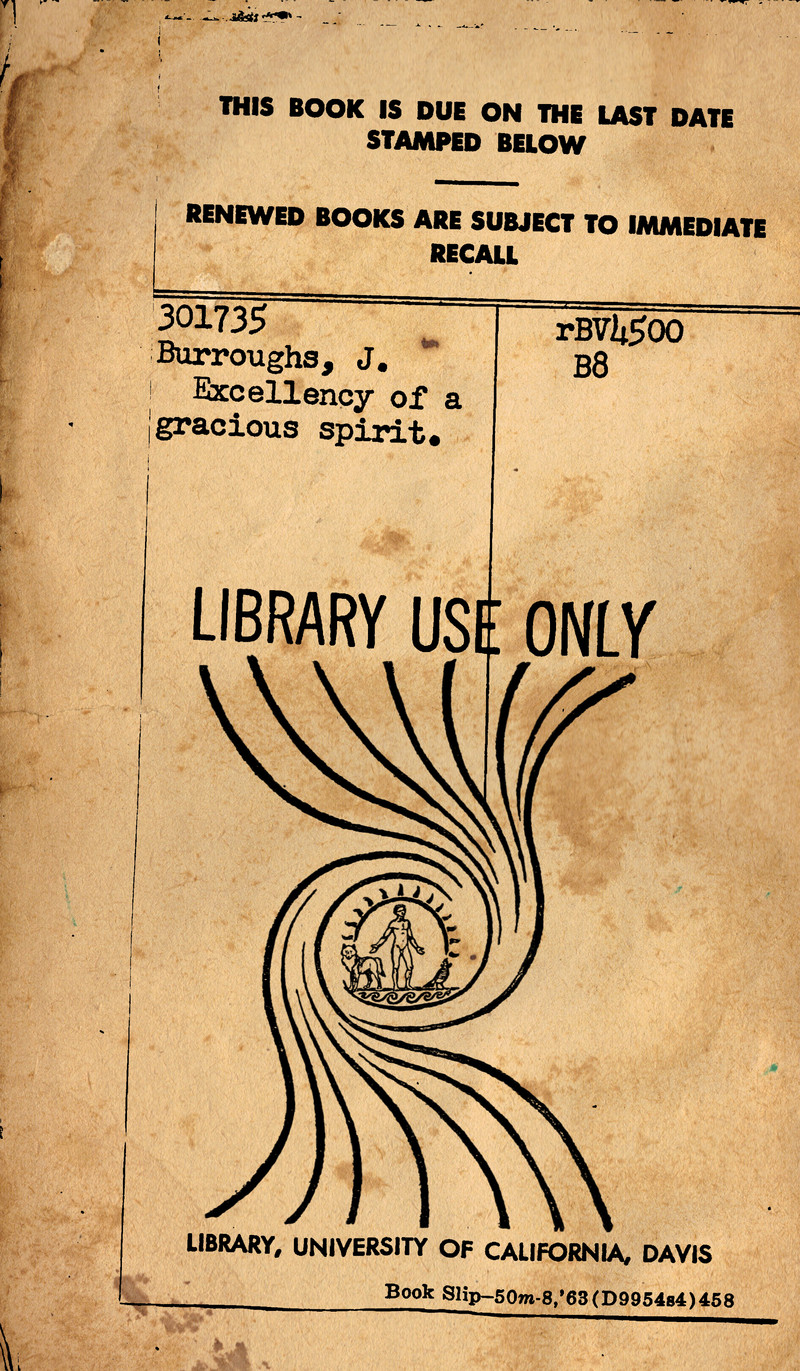 Some library books, for a variety of reasons, become "non-circulating." They no longer move in a circular path (according to the Latin root of circulate). And they are stamped to this effect, with words like "room use only," "may not be checked out," and "under no circumstances to be taken from the building." It's a precious status, indicative of value, rarity, and refererence-worthiness. Yet there's a tinge of sadness, too — a hint of decrepitude and dormancy. We asked a book-whisperer and learned that books do wish to circulate, to be worldly, to mingle, to be at large. And so, as our eccentric research takes us through the digital collections of libraries around the world, we keep a special eye out for non-circulating books. We check their endpapers for the scarlet lettering of "library use only." Then, through a painstaking process involving collaged elements from non-circulating volumes of old magazines, we add some talisman-like flowing imagery to break the stagnation. Swirling lines, spinning figures, twirls and loops and spirals — we add dynamism to counteract the inertia and invite the moribund book to spin off (if only in its dreams, or as a greeting card). We thank the industrious archivists who scan rare books for a wider readership to discover and appreciate.