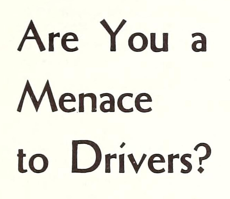 "Are you a menace to drivers?"  From The Lighted Pathway, 1962.