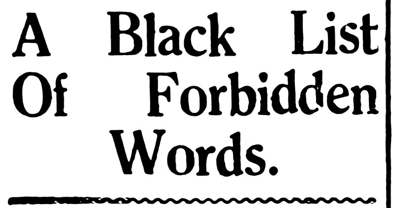 "A black list of forbidden words."  From the Bombay Sunday Chronicle, 1947.  See The Dictionary of Ugly Words.