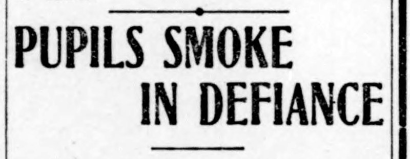 "Pupils smoke in defiance."  From the Duluth Evening Herald, 1908.
