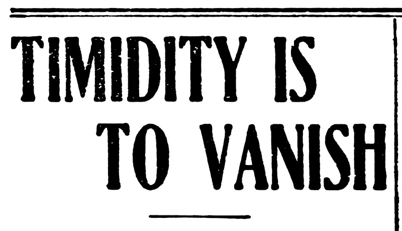 "Timidity is to vanish."  From the Duluth Evening Herald, 1908.