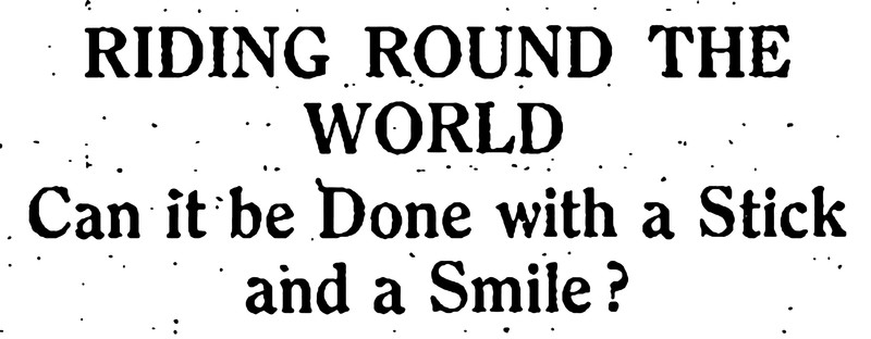"Riding round the world.  Can it be done with a stick and a smile?"  From The Children's Newspaper, 1924.
