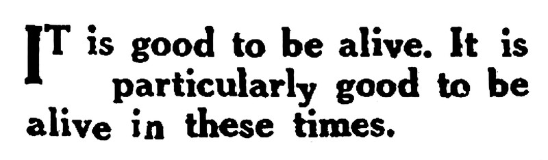 "It is good to be alive.  It is particularly good to be alive in these times."  From the Bombay Sunday Chronicle, 1942.