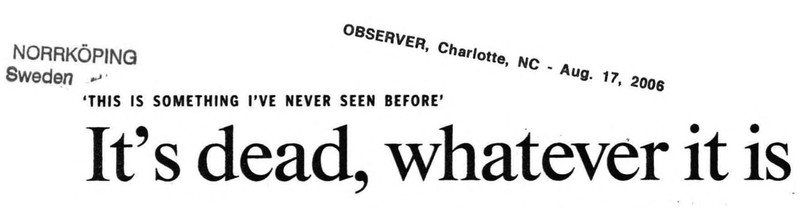 "It's dead, whatever it is."  Via UFO Newsclipping Service, 2006.