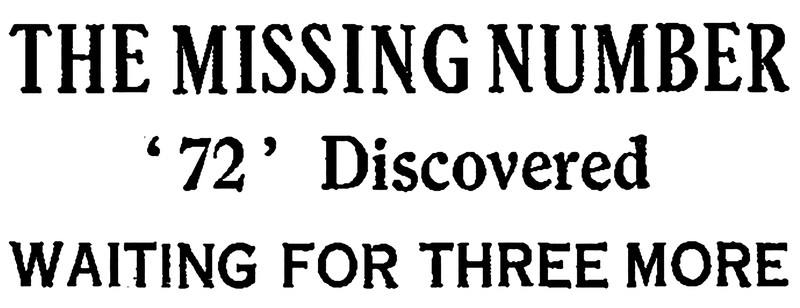 "The missing number '72' discovered.  Waiting for three more."  From The Children's Newspaper, 1922.