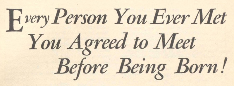 "Every person you ever met you agreed to meet before being born!"  From The New Liberator Weekly, 1931.