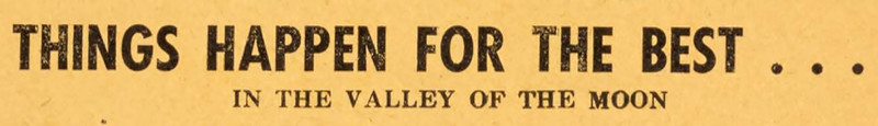 "Things happen for the best ... in the valley of the moon."  From Moonbeans, The Smallest Newspaper in the West, Oct. 28, 1959.