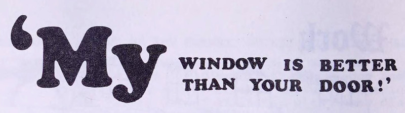 "My window is better than your door!"  From Vajra Bodhi Sea, 1971.