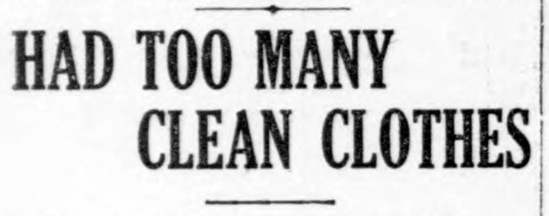 "Had too many clean clothes."  From the Duluth Herald, 1911.