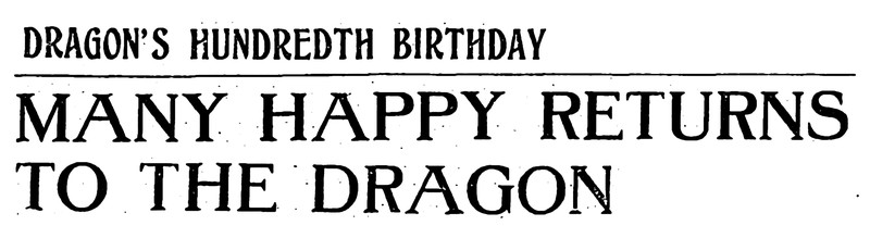 "Dragon's hundredth birthday.  Many happy returns to the dragon."  From The Children's Newspaper, 1925.