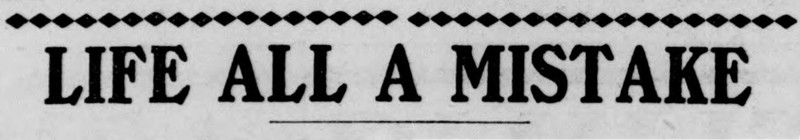 "Life all a mistake."  From the Duluth Herald, 1902.
