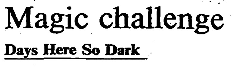"Magic challenge.  The days here so dark."  From The Times, 1981.