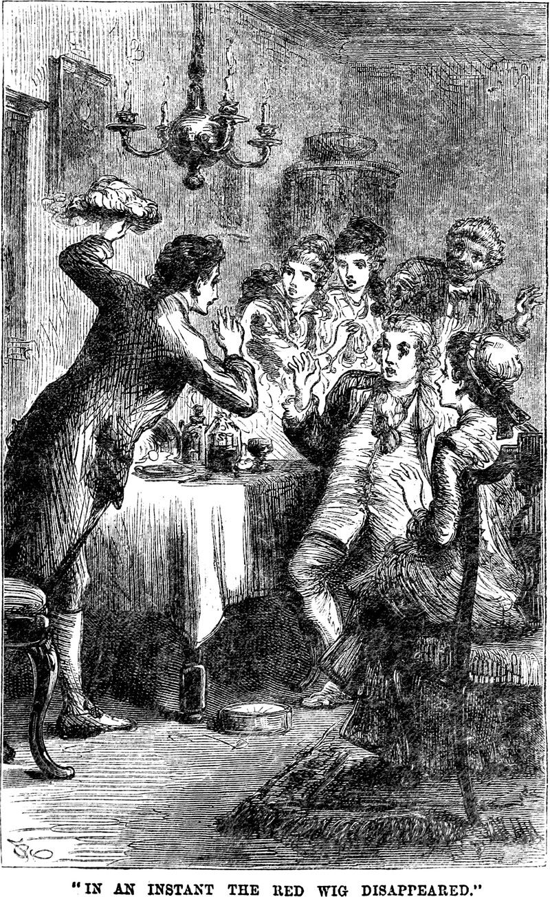 Giving a warning too late to be of any help. It's the oldest trick in the book. The caption reads, "Take care, Mr. Malone, the stairs are slippery." From Shirley by Charlotte Brontë, 1897.