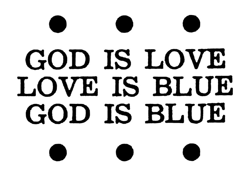 If God is Love (as the Bible says) and Love is Blue (as the song says) then the law of transitivity leads me to at least consider the possibility that God is Blue (as I’ve long hunched). —"In Praise of Blue," 2020