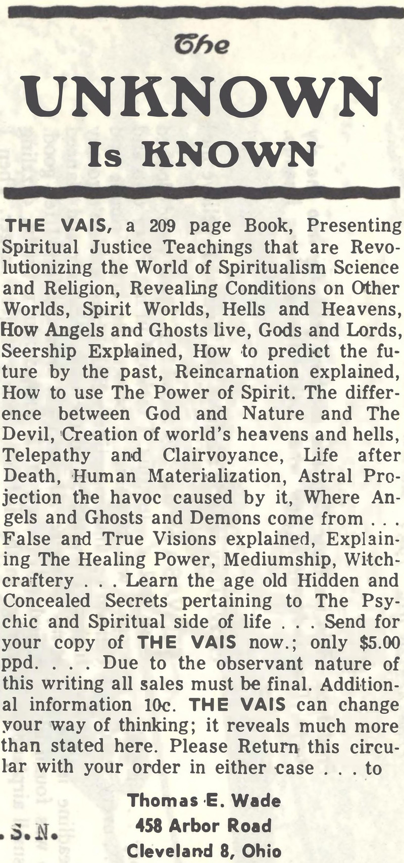 Nearly two decades before Philip K. Dick's VALIS, there was a book called VAIS, on similar themes.  From Flying Saucer News, 1963.
