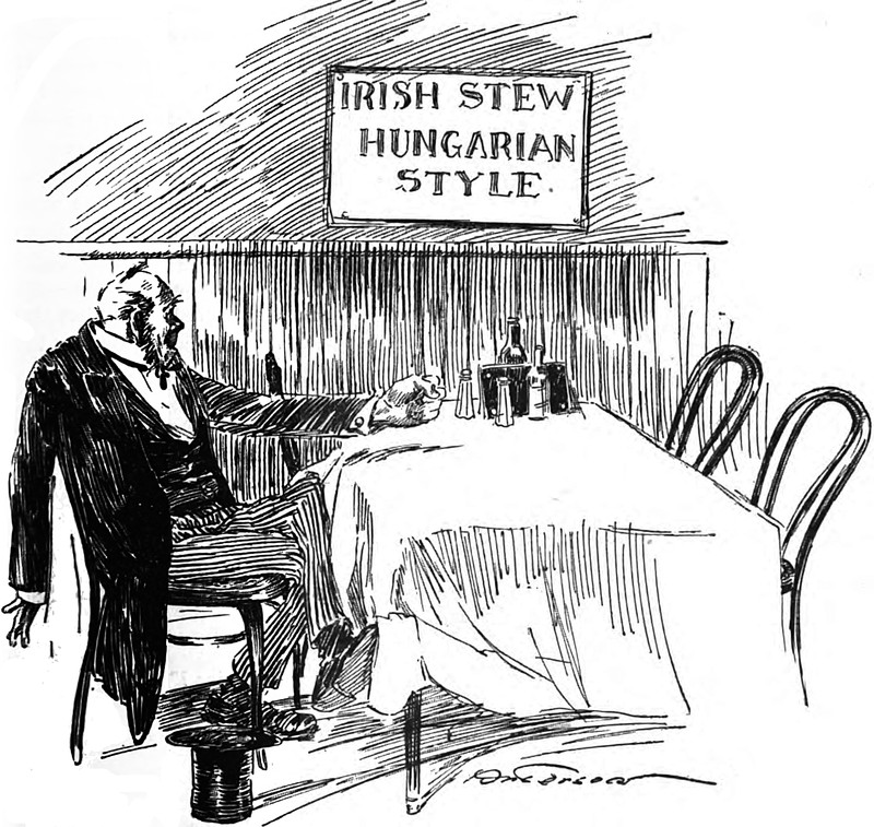 Here's a precursor to the opening of The Brady Bunch, and the figures at the top and bottom are looking into spaces where more people could fit. From The Judge, 1915.