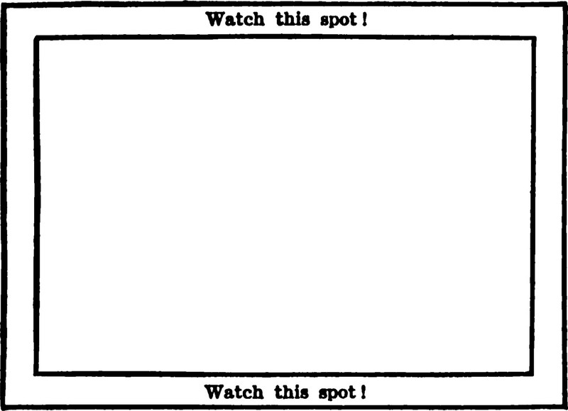 "Watch this spot!" A precursor to the animated gif craze (requiring low-tech imagination), from The Mystery of June 13th by Melvin Linwood Severy (1905).