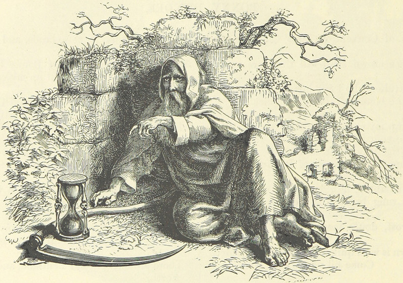 Here's a precursor to Menke Katz's line about how "Even time is tired here of night and day" ("Old Manhattan," Rockrose, 1970). This tired Father Time appears in Illustrated Poems and Songs for Young People, edited by Lucy Sale Barker, 1885.