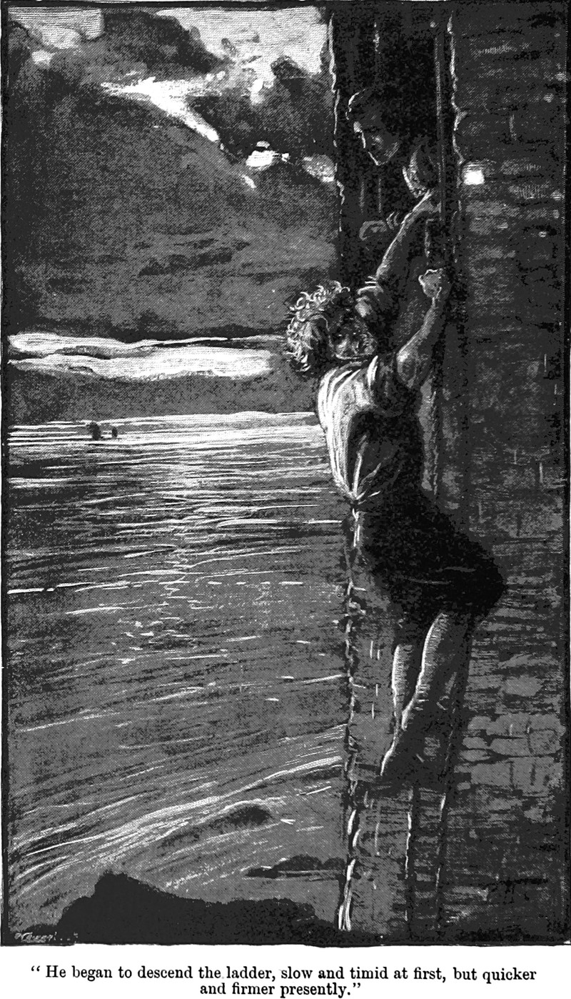 Here's a precursor to Stephen Fry's "tremulously at first and then with mounting heat and passion." The caption reads, "slow and timid at first, but quicker and firmer presently." From Jacques Hamon or Sir Philip's Private Messenger by Mary Emily Ropes, 1896.