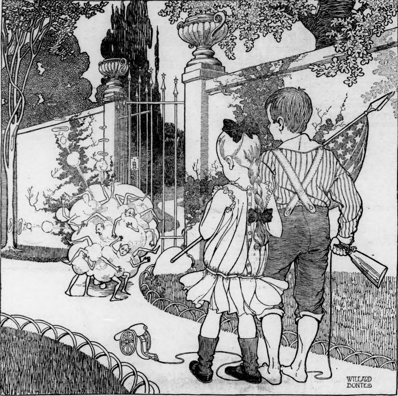 There are ten firecrackers hidden in this picture (quite difficult to find), but we're technically here for the cluster of imps. From the Duluth Evening Herald, 1903.
