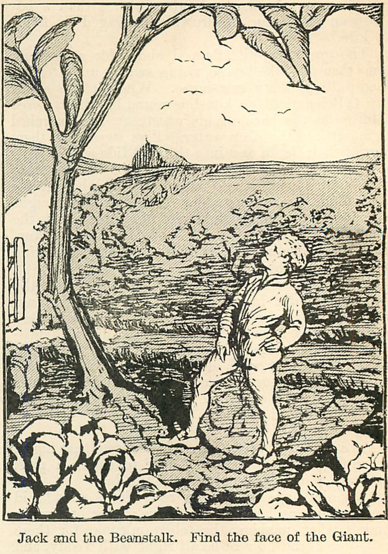 Find the face of the beanstalk giant.  From Chatterbox, 1908.