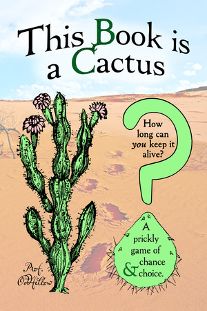 This Book is a Cactus turned out to be the most difficult project we've ever tackled. We wanted to recreate the very first computer game we programmed, from back in the 1980s—the Tamagotchi precursor of a virtual flower—but this time in book form. What we ended up with is a combination choose-your-own-adventure and puzzle book; it's a surrealistic virtual reality experience you hold in your hands, as the book is also a cactus that you attempt to keep alive. A hybrid cactus-book. Each page is like a square on a game board. You make decisions and solve riddles, and your choices/answers lead to different squares. Math puzzles, word puzzles, logic puzzles, and riddles appear at intervals within the fractal storyline.