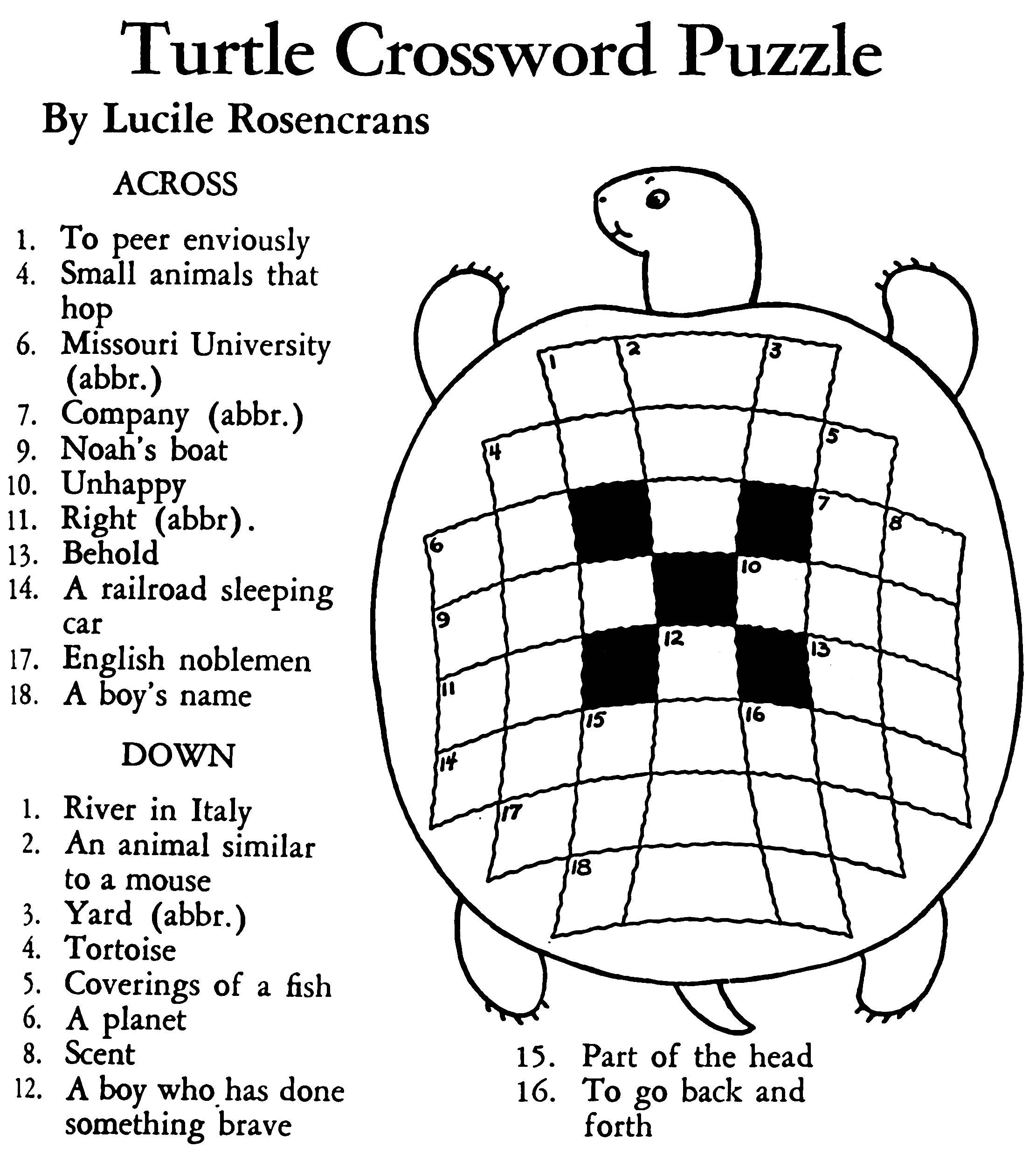 In this unusal crossword puzzle, you're to determine not the words but the numbers of the across and down clues. From Think-and-Do Book to Accompany More Friends and Neighbours, 1940.