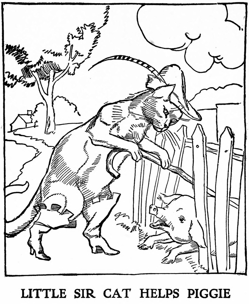 #vintage illustration #anthropomorphism #cat #puss in boots #1920s #pig #illustration #animal friends