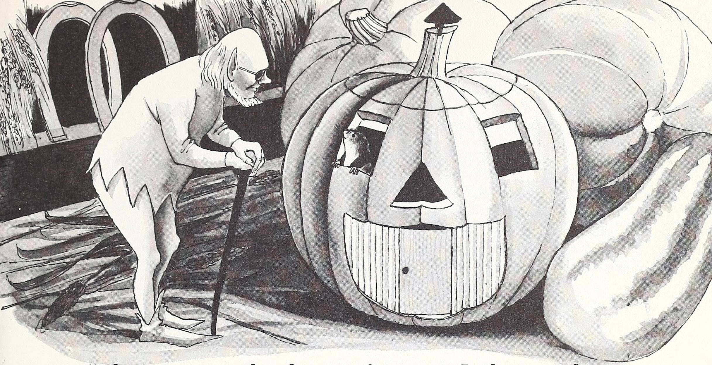 #vintage illustration #elf #jack-o'-lantern #1960s #illustration