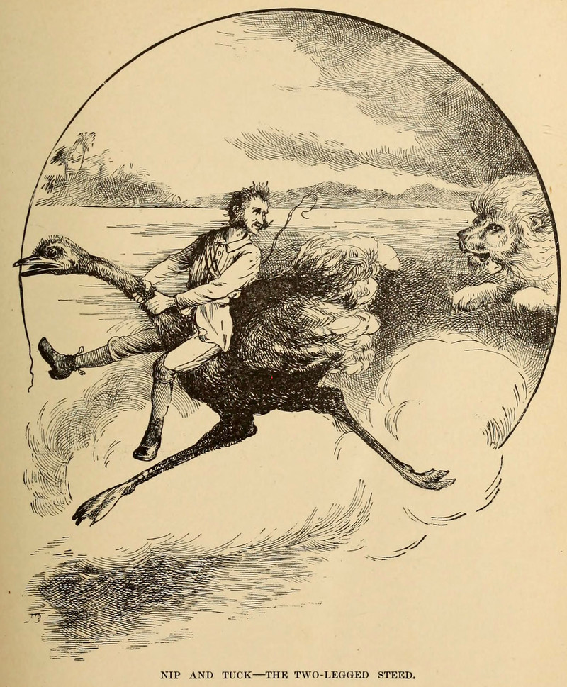#vintage illustration #animal attack #lion #ostrich #illustration #1880s