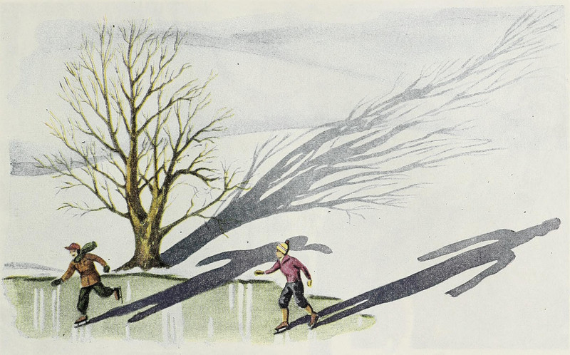 #vintage illustration #winter #shadow #ice skating #1940s #illustration