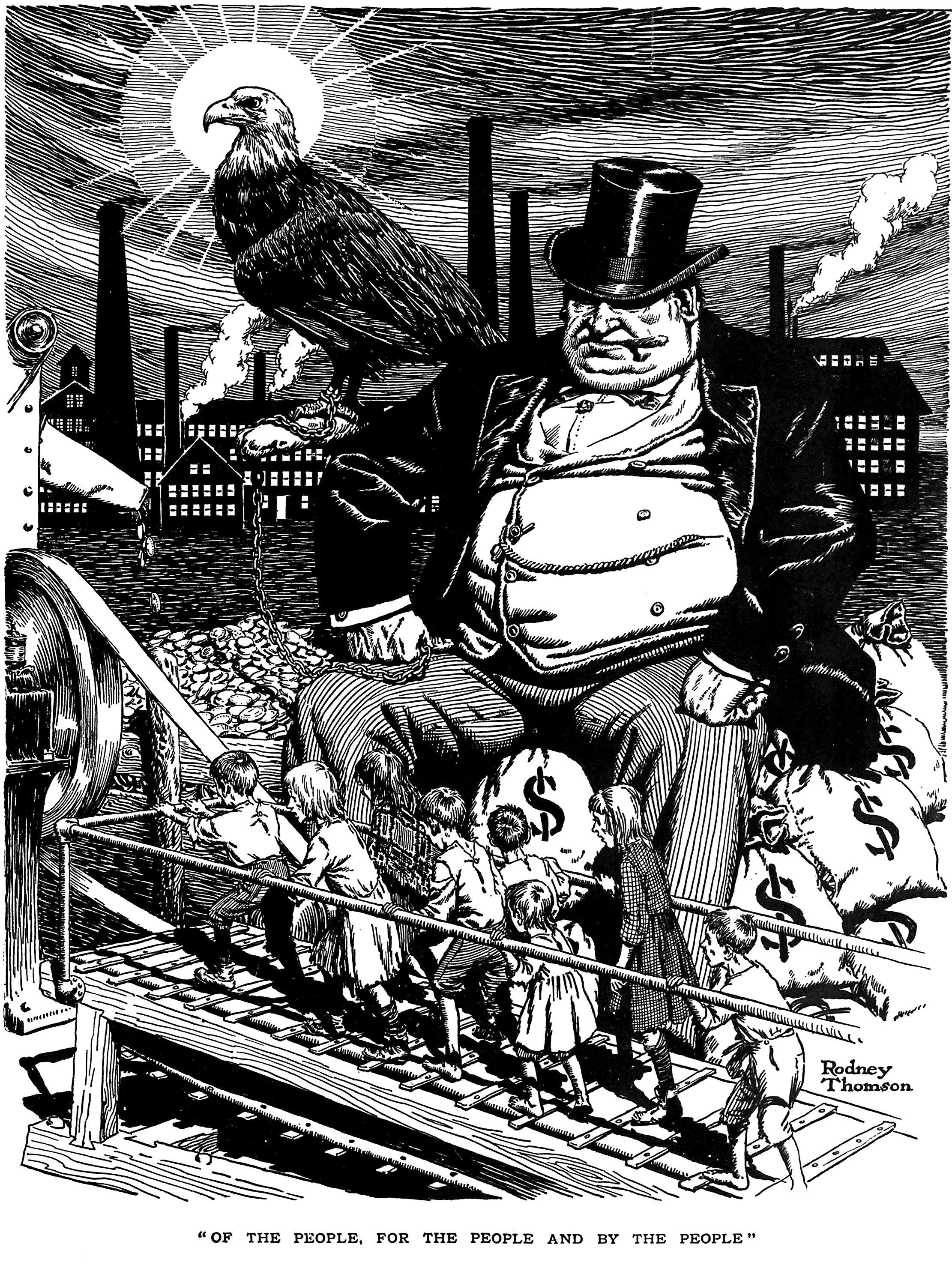 #vintage illustration #political cartoon #treadmill #money #illustration #capitalism #child labor #1910s