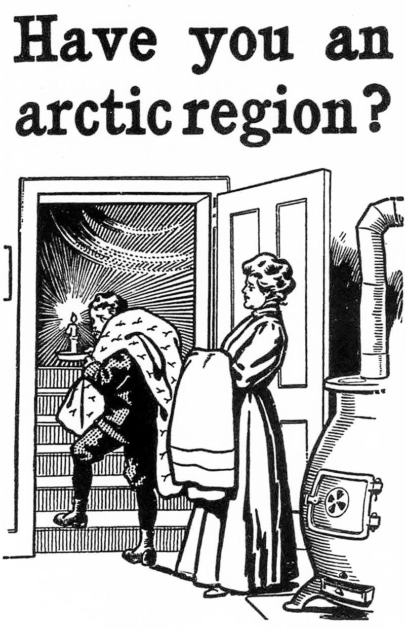 #vintage illustration #vintage ad #illustration #furnace #1910s #ad #cold spot #heating