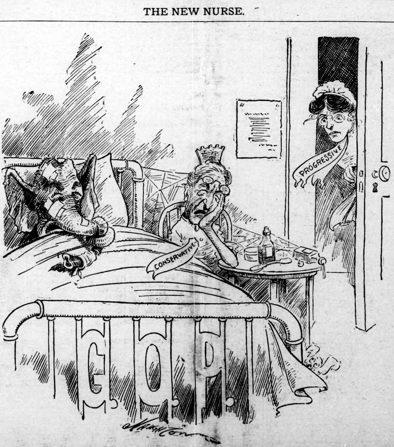 #vintage illustration #political cartoon #elephant #illness #nurse #illustration #1910s