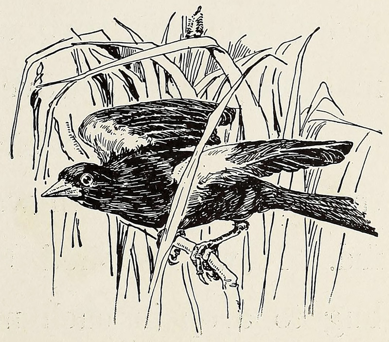 A redwing.  From The Outdoor Book by Zoe Meyer and illustrated by Clara E. Atwood, 1928.