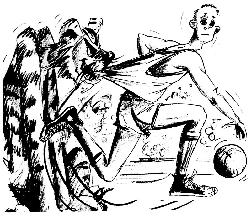#vintage illustration #animal attack #tiger #1960s #illustration #basketball