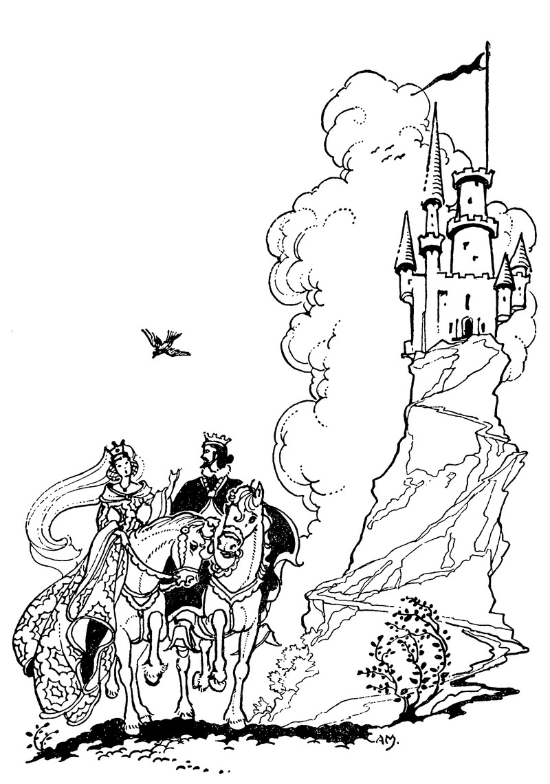#vintage illustration #king #castle #queen #illustration #1950s