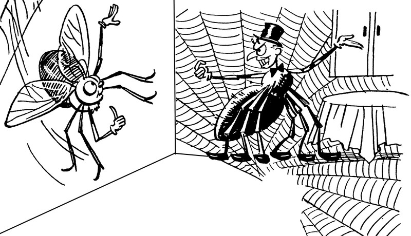 #vintage illustration #anthropomorphism #spider #fly #1940s #illustration