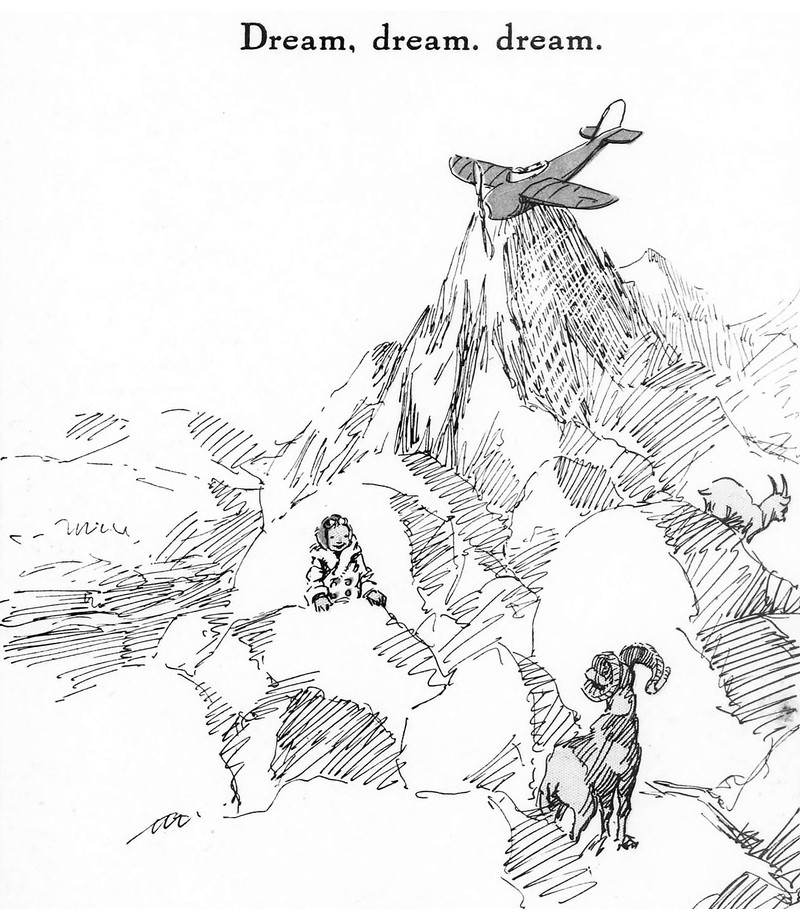#vintage illustration #mountaintop #goat #1920s #airplane #illustration