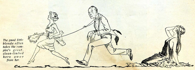 "The good little blonde often takes the vampire's great, clean-limbed hero away from her."  From Picture-Play Magazine, August 1922.