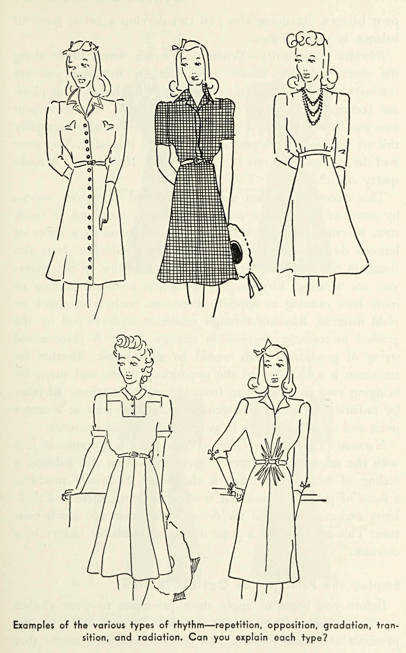 "Examples of various types of rhythm—repetition, opposition, gradation, transition, and radiation. Can you explain each type?" From Foundations for Living by Fern Silver & Mildred Graves Ryan, 1943.
